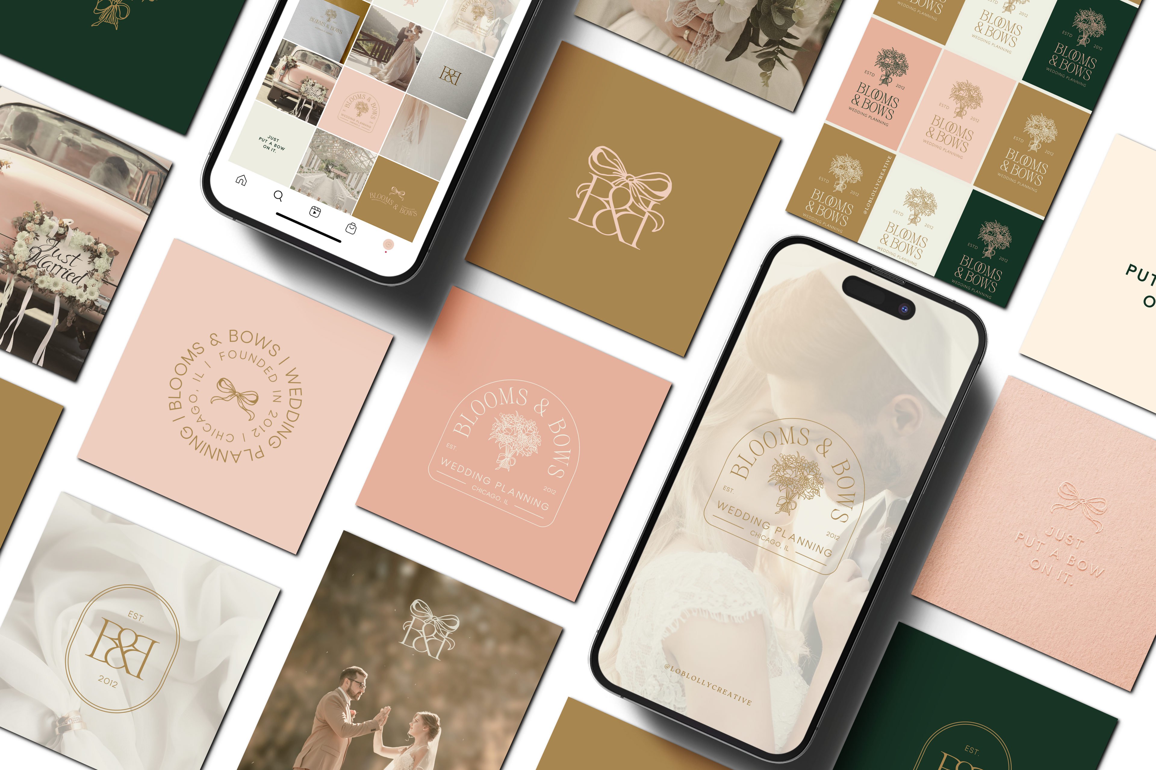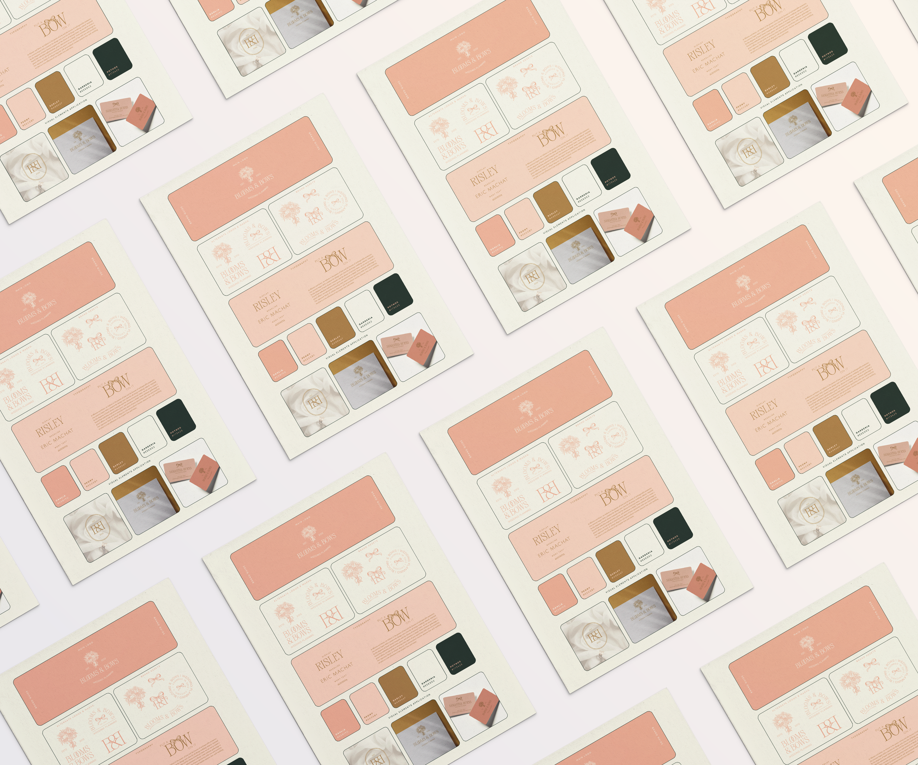 Perfect for event planners, floral studios, gift shops and more, Blooms & Bows oozes elegance. This brand includes: primary logo, 2 alternate logos, 2 logo mark variations, 4 badge logos, 2 hand-drawn illustrations, brand color palette and brand style guide.